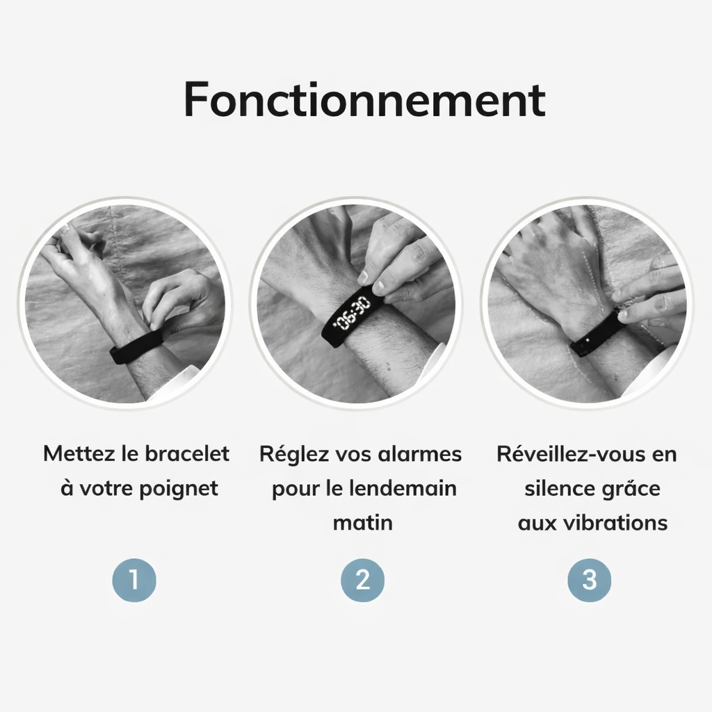 Une vibration directement au poignet pour vous réveiller sans bruit et sans déranger votre partenaire.